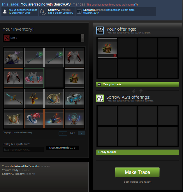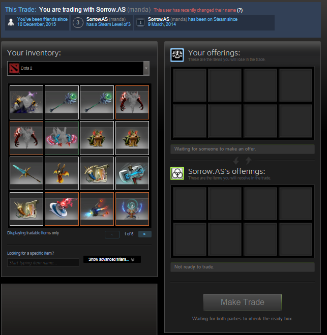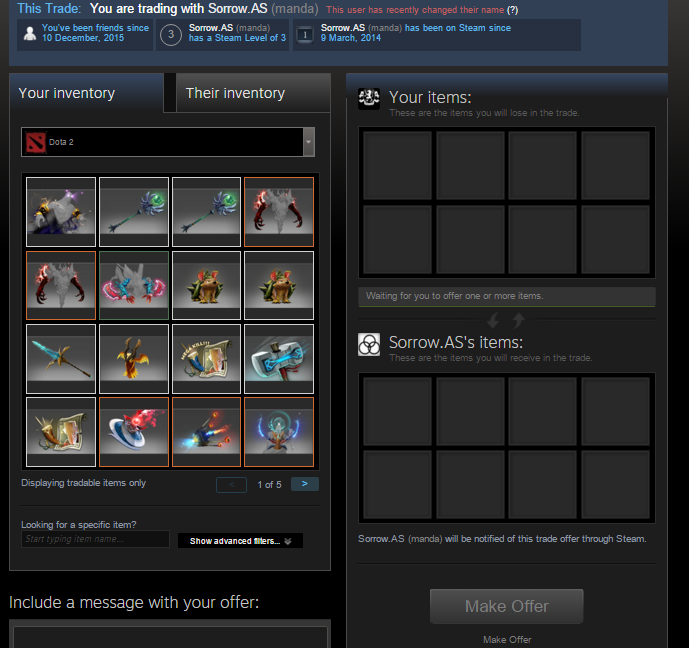 - Lalu pilih item yang berada item anda/ teman anda, setelah itu centang lalu pilih "Make Offer" [caption caption="trade7"][/caption]