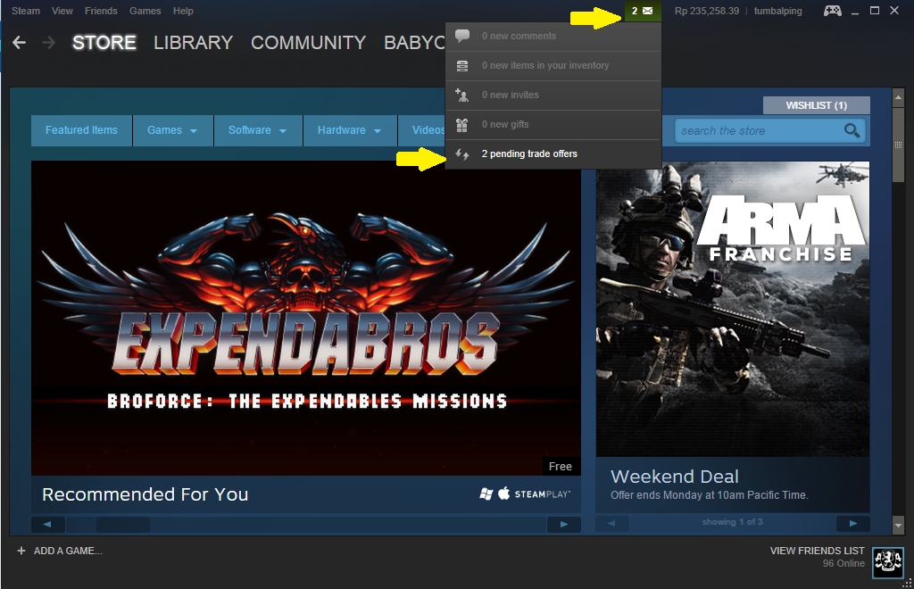 - Klik notifikasi yang berada pada pojok kanan steam, berupa logo surat/email