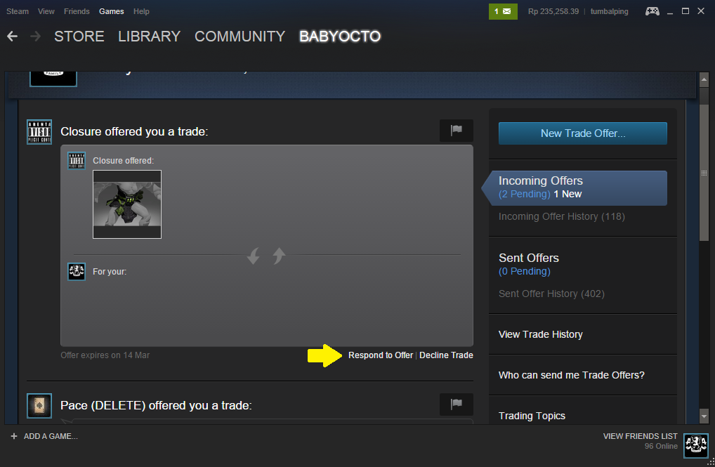 - Pilih tombol trade offer [caption caption="trade4"][/caption]